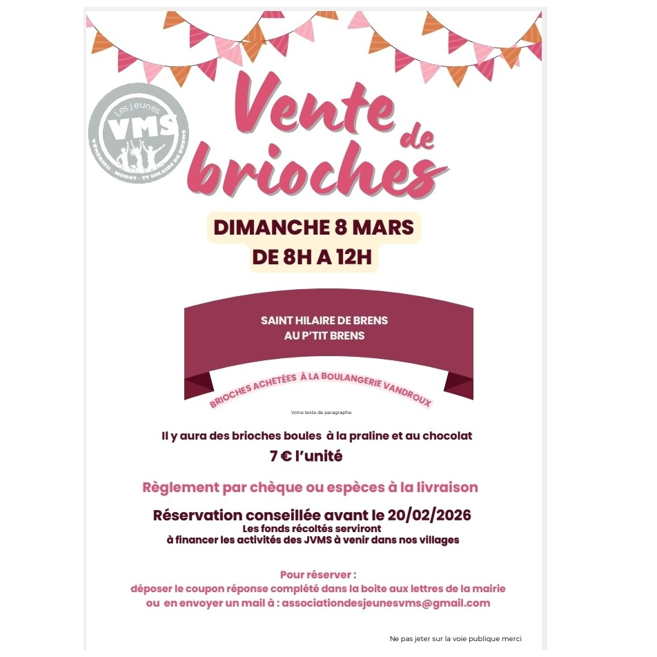 La nouvelle association " Les jeunes VMS ( Vénérieu- Moras- St Hilaire-de-Brens) organise une vente de brioches sur réservation