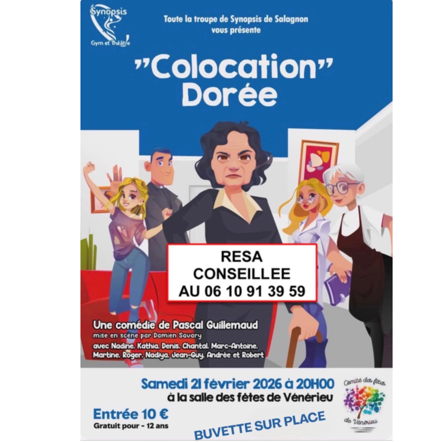 Le comité des fêtes de Vénérieu vous propose " Colocation dorée" Samedi 21 Février à 20h salle des fêtes de Vénrérieu.