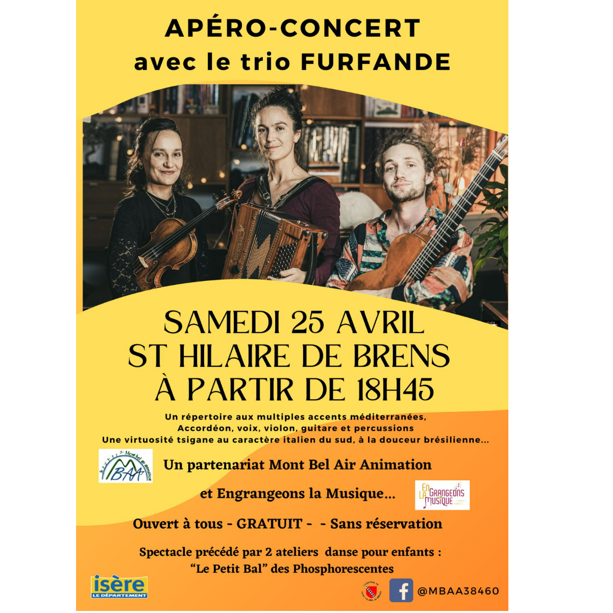 Après le "Petit Bal" des Phosphorescentes, et en partenariat avec le festival "Engrangeons la musique", nous vous proposons un apéro-concert avec le TRIO FURFANDE.